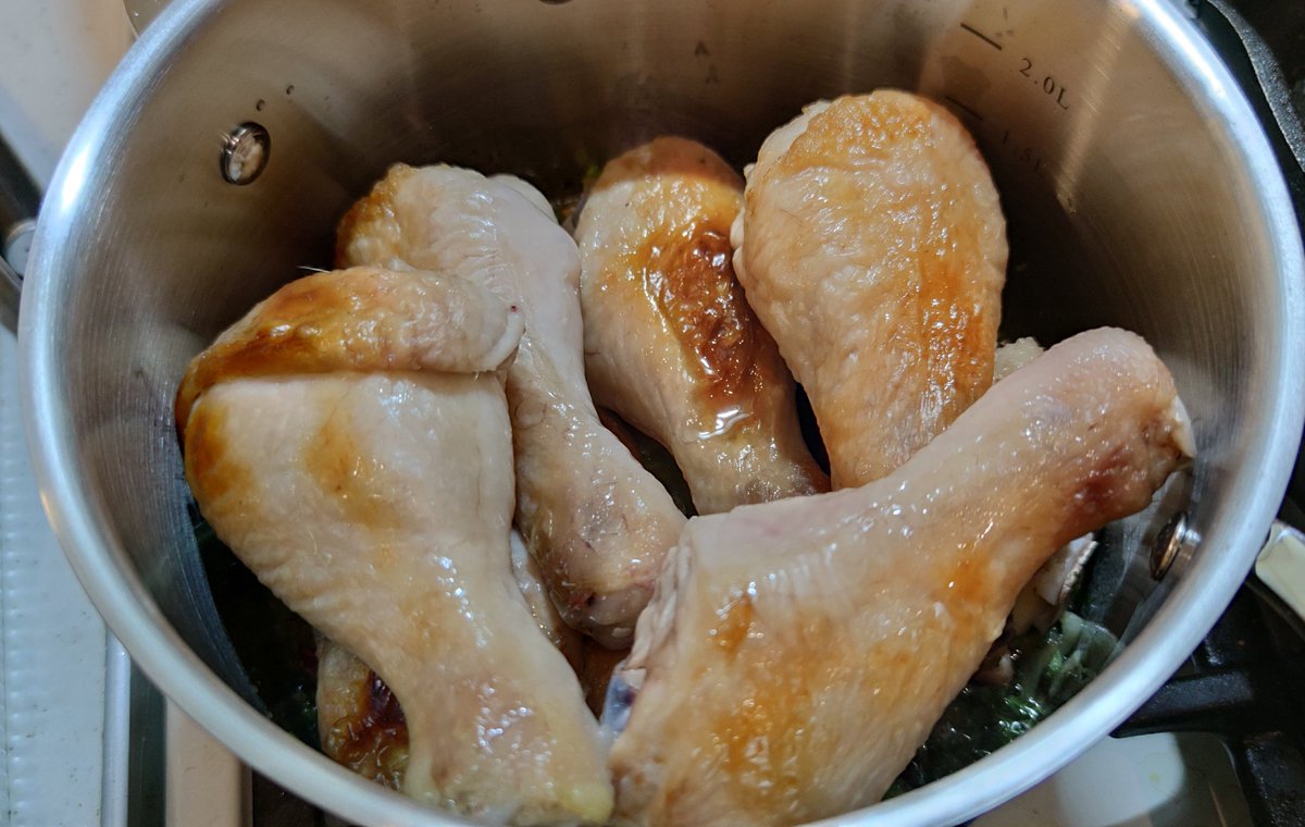 Ноги доводить до готовности не нужно:лишь прижарить и всë. Потому что перед томлением и тушением всегда баще прижарить чем не прижарить.