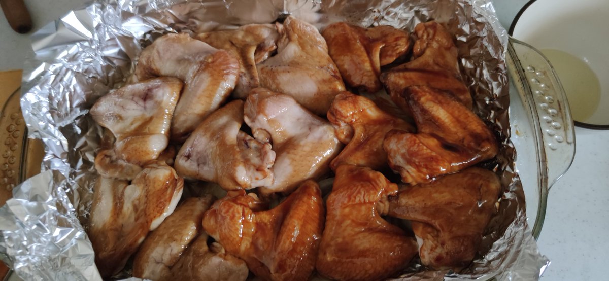 Пока варится бульон я залил куриные руки смесью светлого пива и соевого соуса в соотношении 2:1. И в холодом всë чтоб впиталось. Вы ж помните про температуру маринования? Помните конечно.