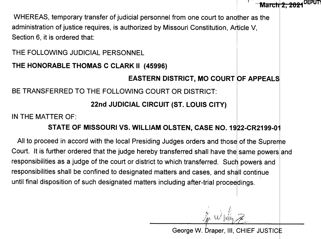 Clark was going to do a bench trial. All kosher up to here. But then on Feb 2, 2021, @GovParsonMO promotoed Clark to the Missouri Court of Appeals.