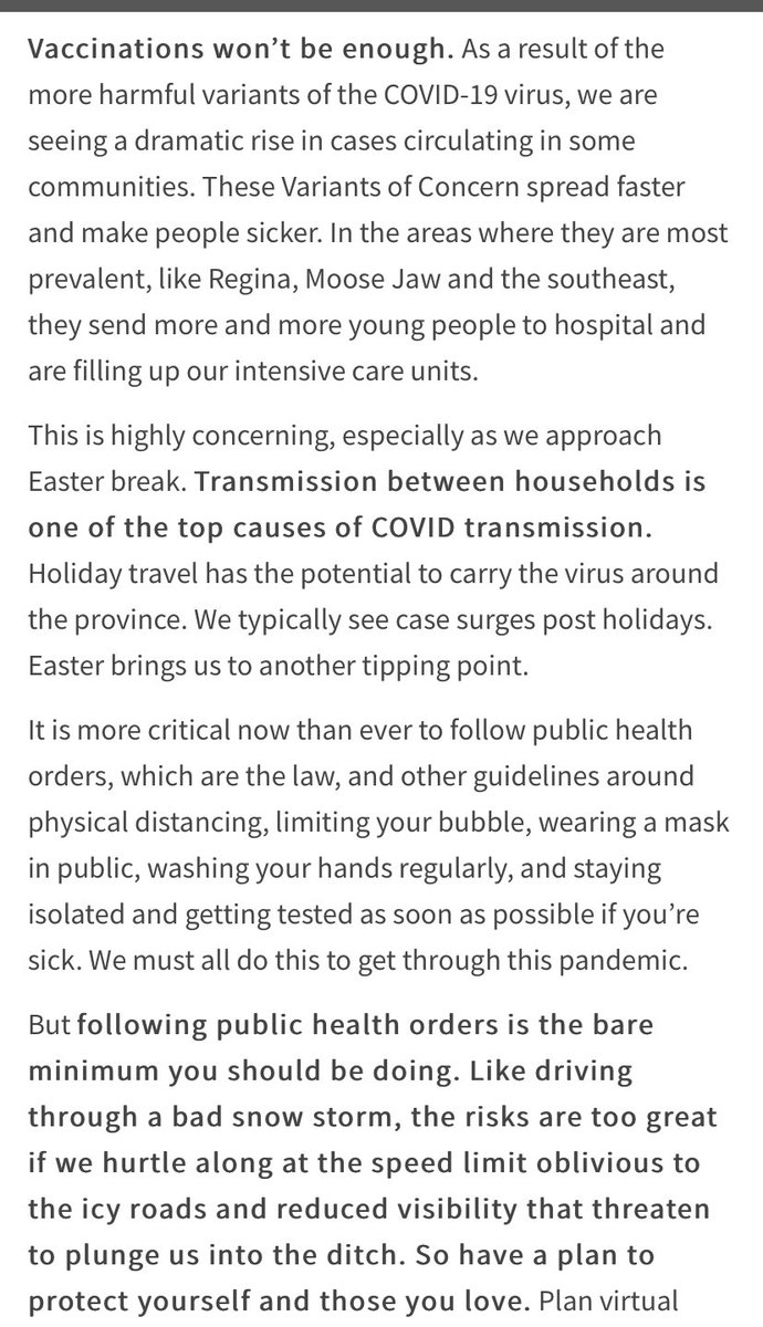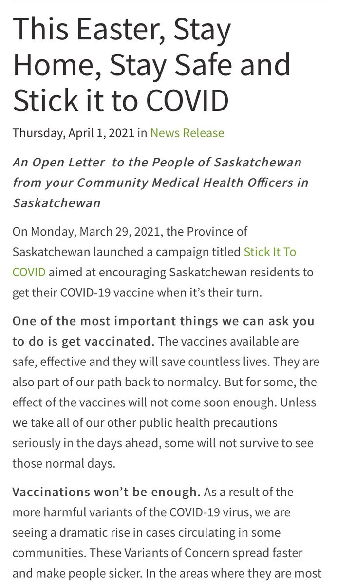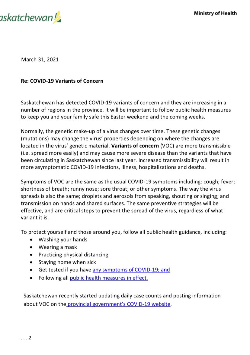 This is on the health authority website, linked to on the same email, and is signed by all the medical officers of health in the province.