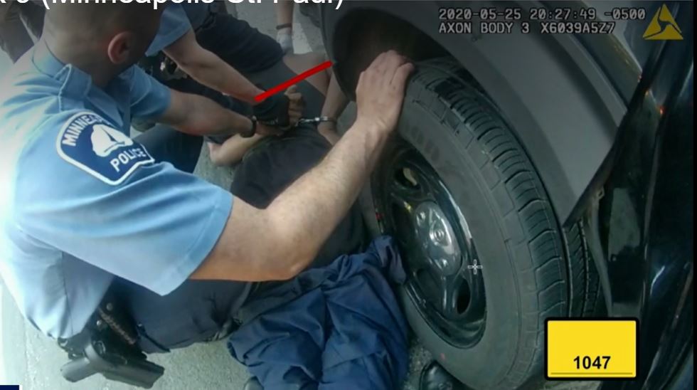 Chauvin defense atty posted screengrabs from body cam footage, asking Lt. Mercil if these images capture #DerekChauvin knee on Floyd's back/shoulder blades. Lt Mercil agrees it appears knee is NOT on neck. Agrees, this looks more "prone hold w/ knee" rather than "neck restraint."