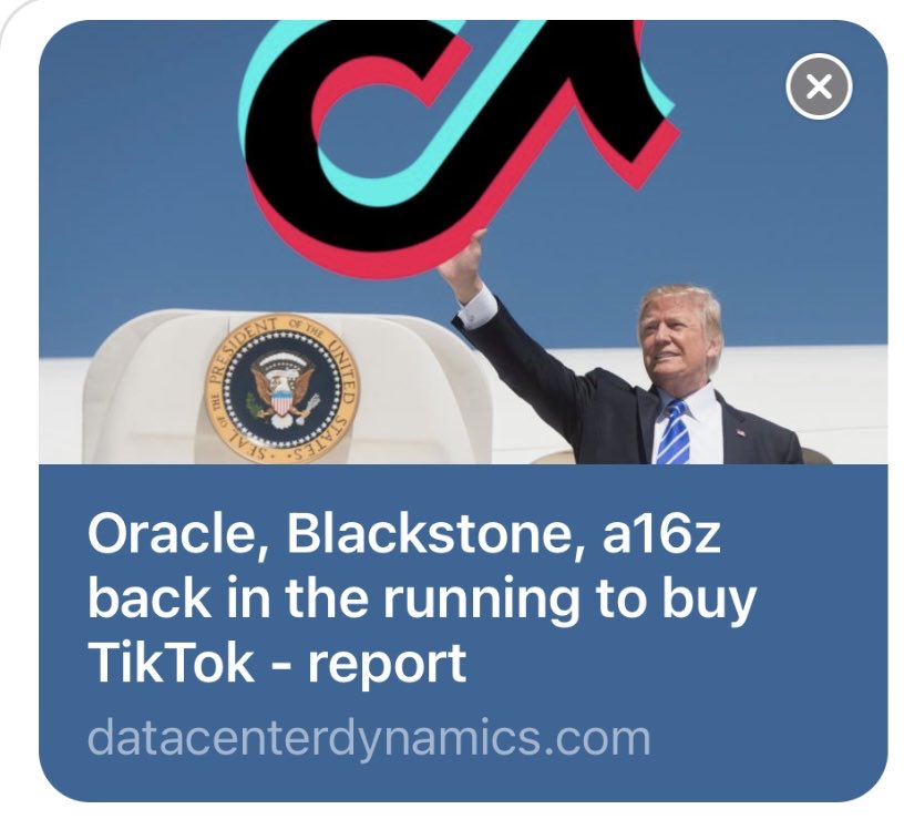 3/ “A consortium of companies, including Oracle [founded by Larry Ellison] … & a16z (Andreessen Horowitz), is back in the running to acquire TikTok. As reported by Bloomberg [in June]