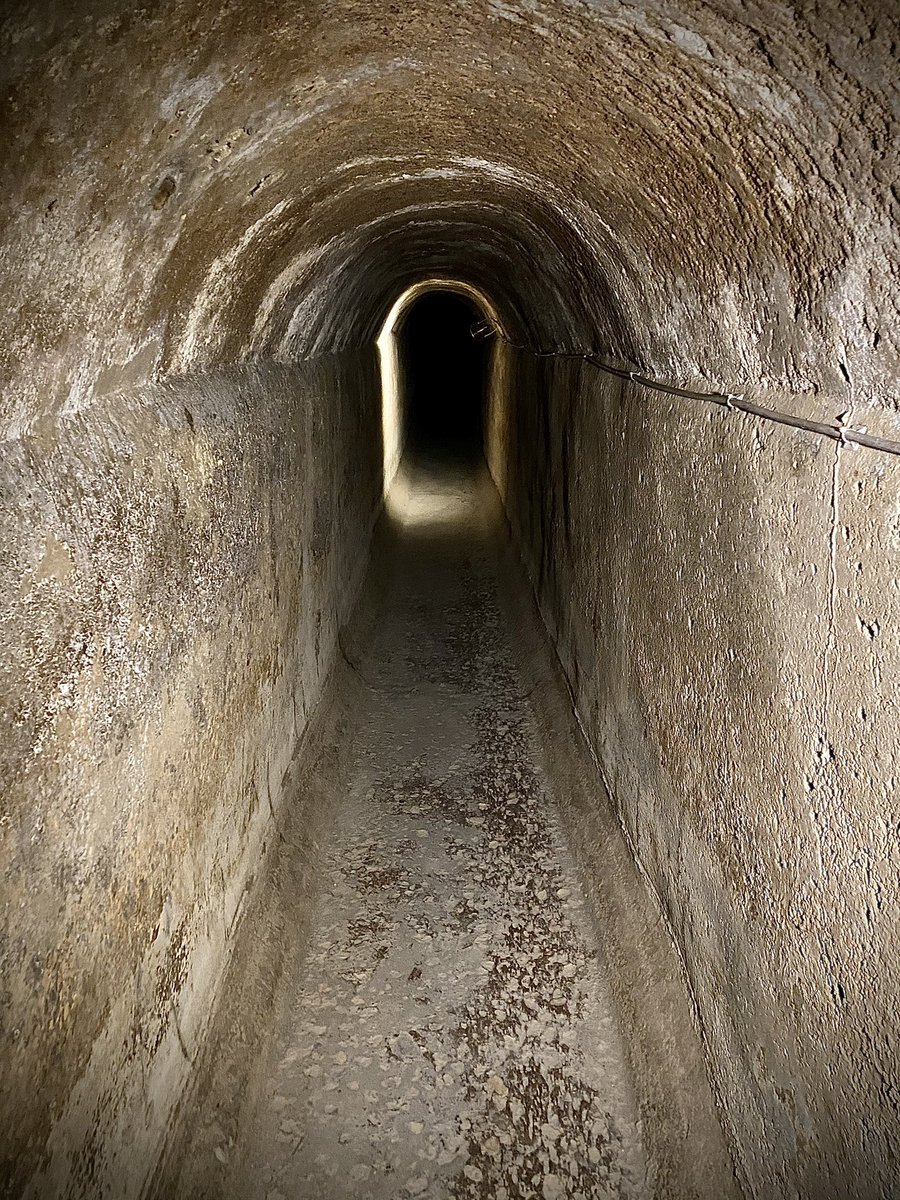6/9 The walls were built with opus reticulatum, a technique of ancient Roman bricklaying that resembles the patterns of a net. Atop this, a thick layer of watertight concrete made from volcanic ash, broken pottery, and stones was applied to keep the tunnel flowing smoothly!