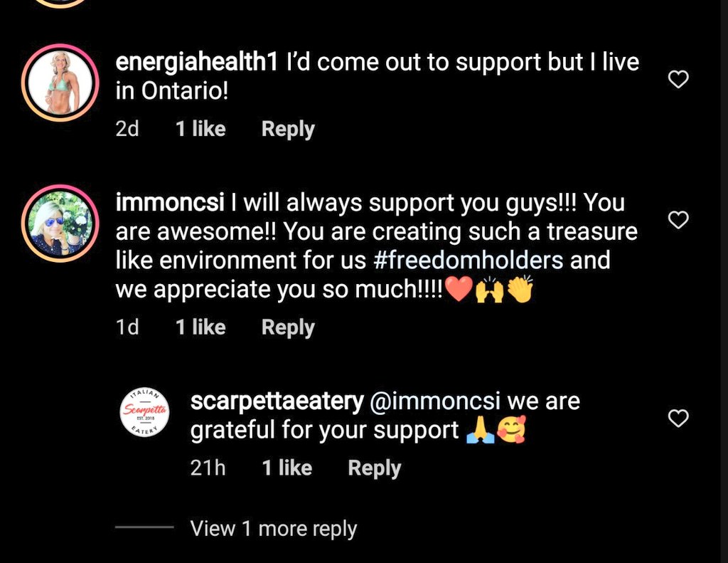 Their Instagram is not down anymore, but here's a sampling of comments on a recent post.