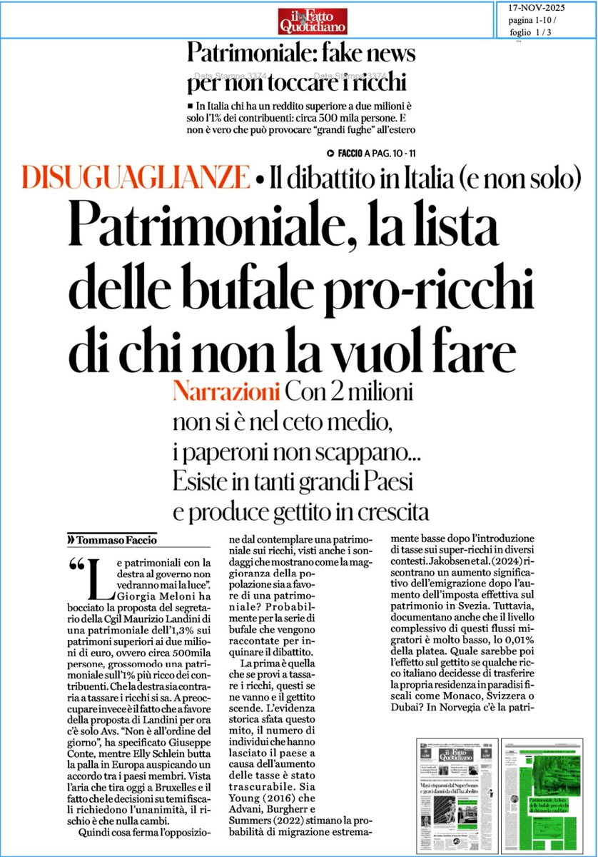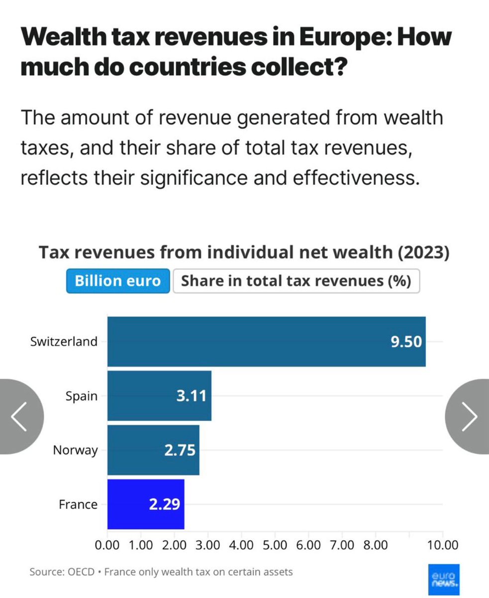 In Francia la proposta di Zucman di una patrimoniale del 2% su patrimoni sopra 100 milioni ha un gettito previsto di circa 20 miliardi. 3/