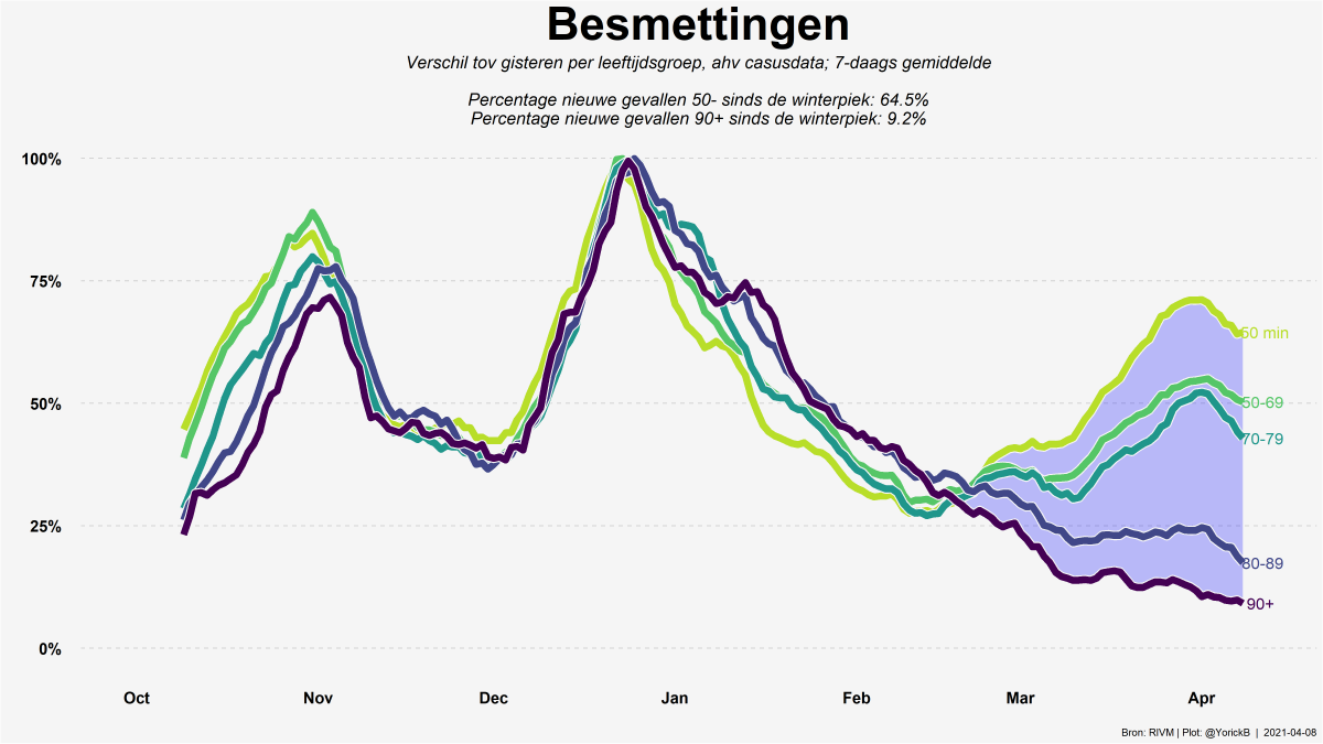 Verschil nieuwe gevallen tussen verschillende leeftijdsgroepen.