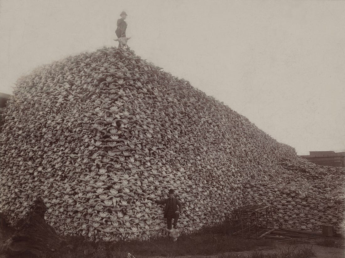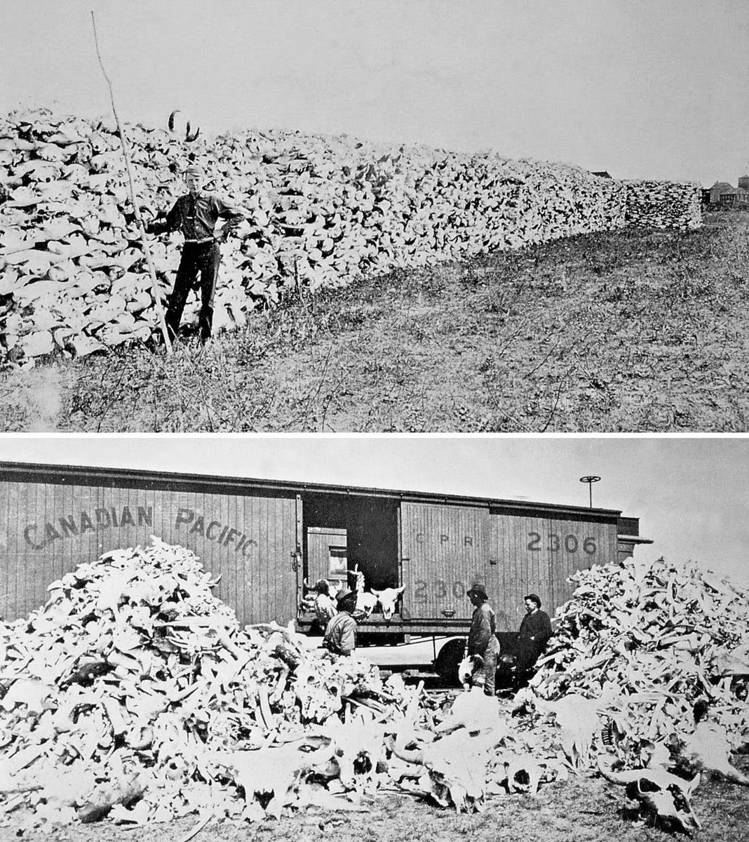 Las montañas de calaveras y huesos de las cacerías masivas se cargaban en vagones de tren para hacer con ellos fertilizantes para el campo. A