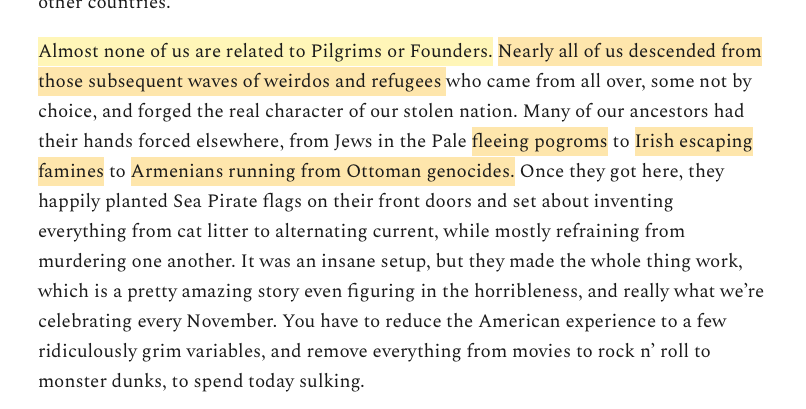 Taibbi ties Zinn's book to the imagined woke-scolds shaming his holiday enjoyment over some trifling genocide in the past. The implication is that Zinn's book paints us all as guilty descendants of racist Founders, but his book actually highlights righteous untold struggles.