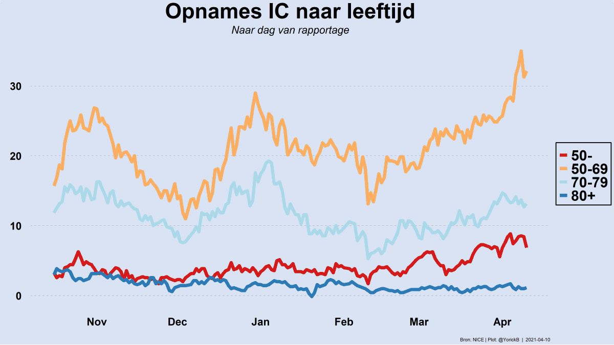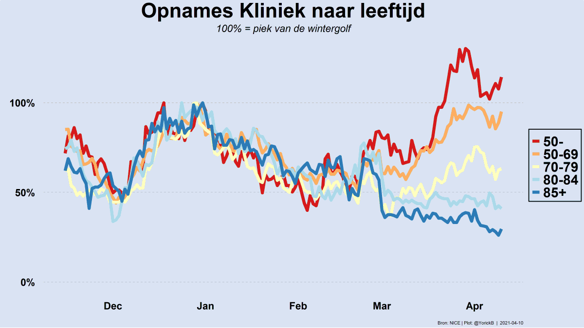 Verschillen opnames tussen verschillende leeftijdsgroepen.