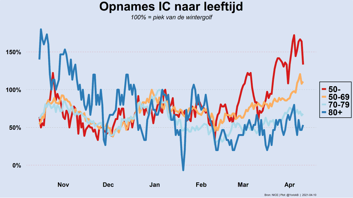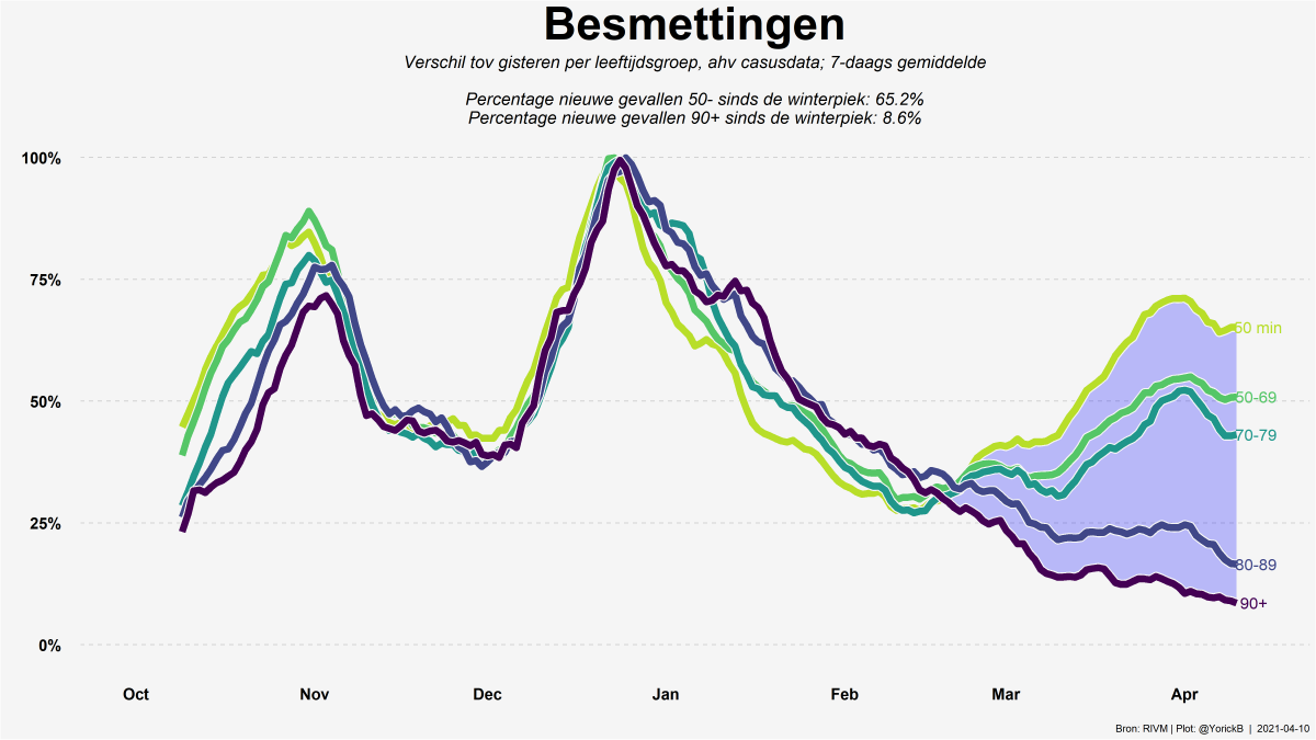 Verschil nieuwe gevallen tussen verschillende leeftijdsgroepen.