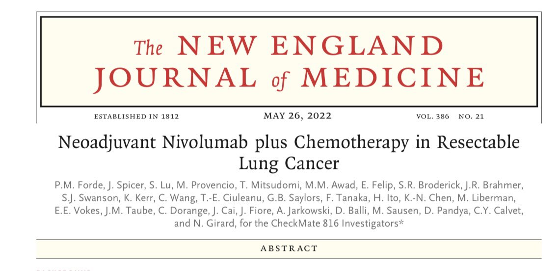 Today, CheckMate 816, a phase 3 trial of neoadjuvant chemo + nivolumab immunotherapy was published i - this was a global effort to improve the lives of pts dealing with newly diagnosed surgical lung cancer. nejm.org/doi/full/10.10…