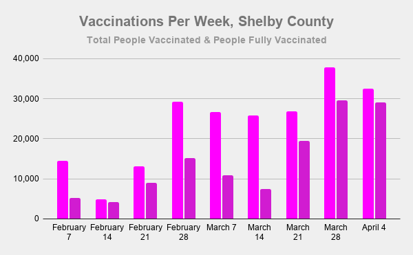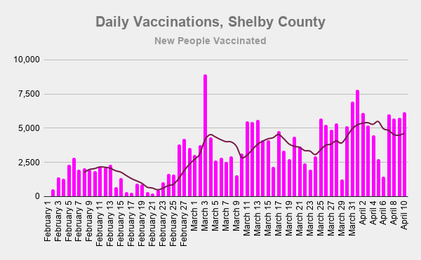 Over 32k new people were vaccinated this week, down over 5k from last wk, but still higher than any other previous wk. Hopefully, this drop is related to the Easter holiday.