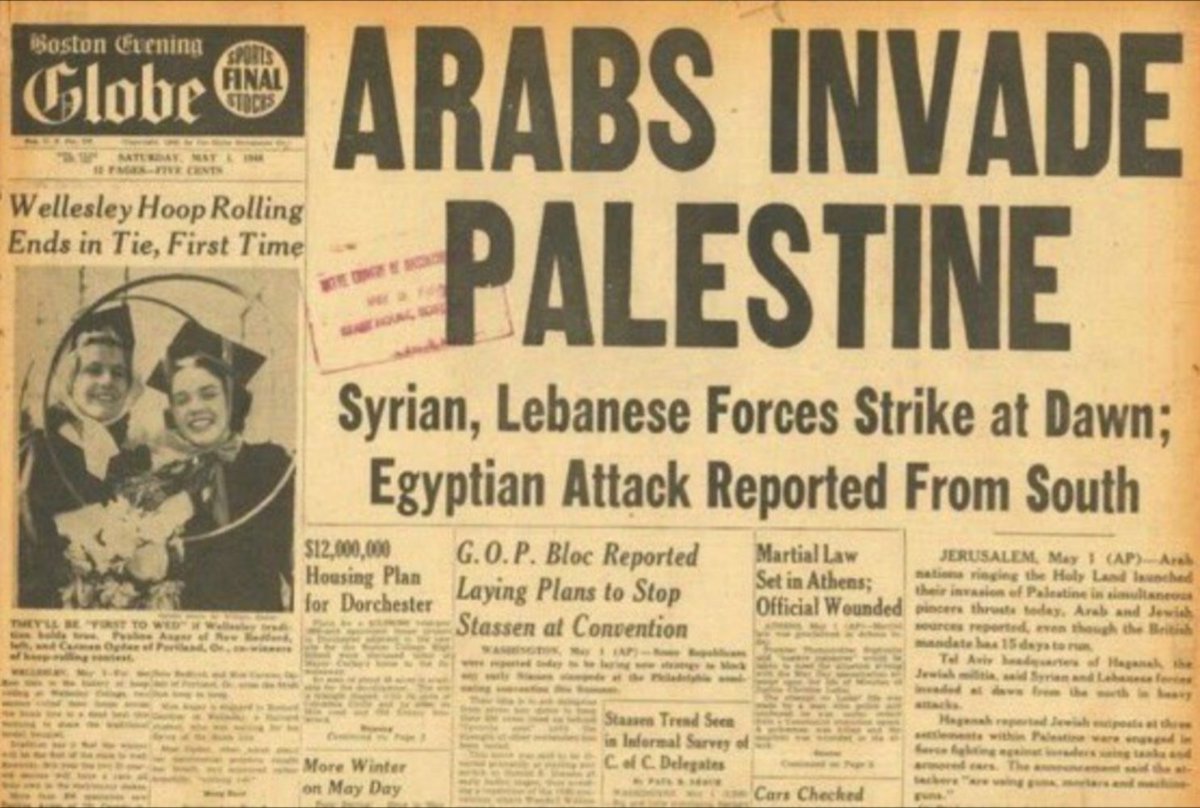 May 1948: Israel declared Independence. 7 Arab armies invaded nascent Israel intending to destroy Israel & kill 600,000 Jews. This is 3 years after Holocaust.