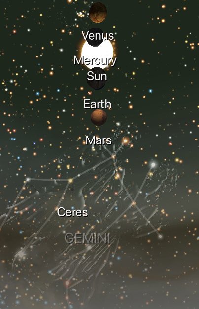 Now underneath the 5 planet/sun alignment is the constellation Gemini, the Twins...