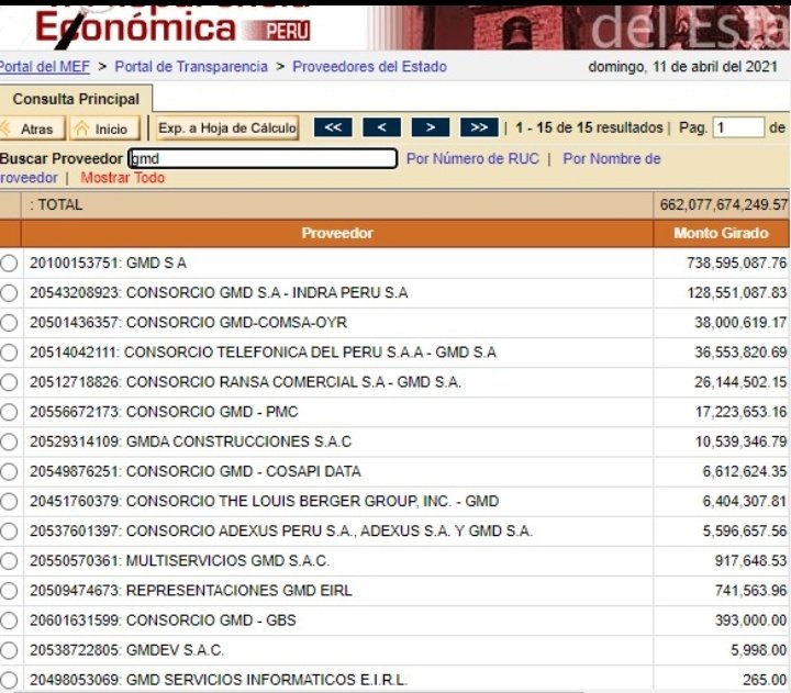 Aquí pueden ver un excel con todos los contratos que tiene GMD. Superan los 1,400 millones de soles. Una empresa tan rentable, con participación en tantos consorcios y con tantos contratos (ver imagen) ¿Por que fue "vendida" a $87 millones?