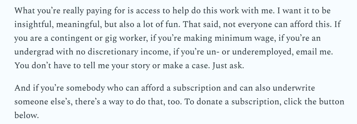 I hope this doesn't get lost. I took this from @annehelen who started this policy when she launched her newsletter and I plan to honor it for Galaxy Brain. my email is in bio.
