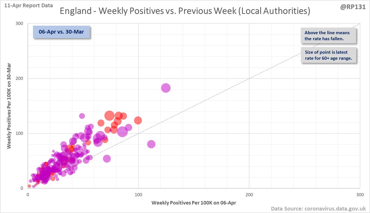 Bubble chart (Tiers / Sub-region) thread. This type of chart allows us to compare week on week changes by seeing if the points are above or below the dotted line. This version is grouped by "sub-regions" as were previously used for assigning tiers: