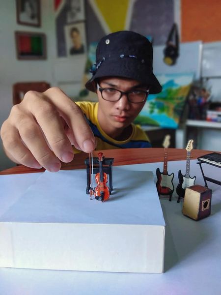 This 18-year-old artist from El Nido, Palawan makes miniature musical instruments from recycled materials! (Photos courtesy of Clem Ecayan)
