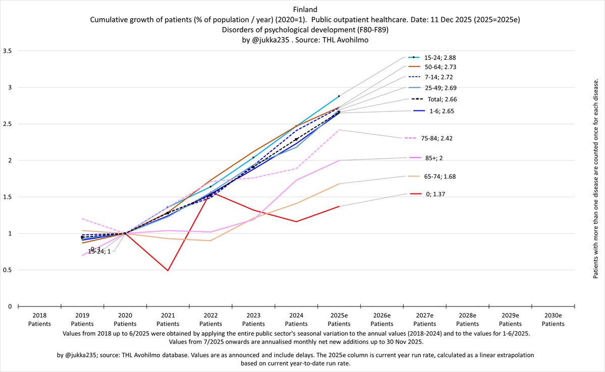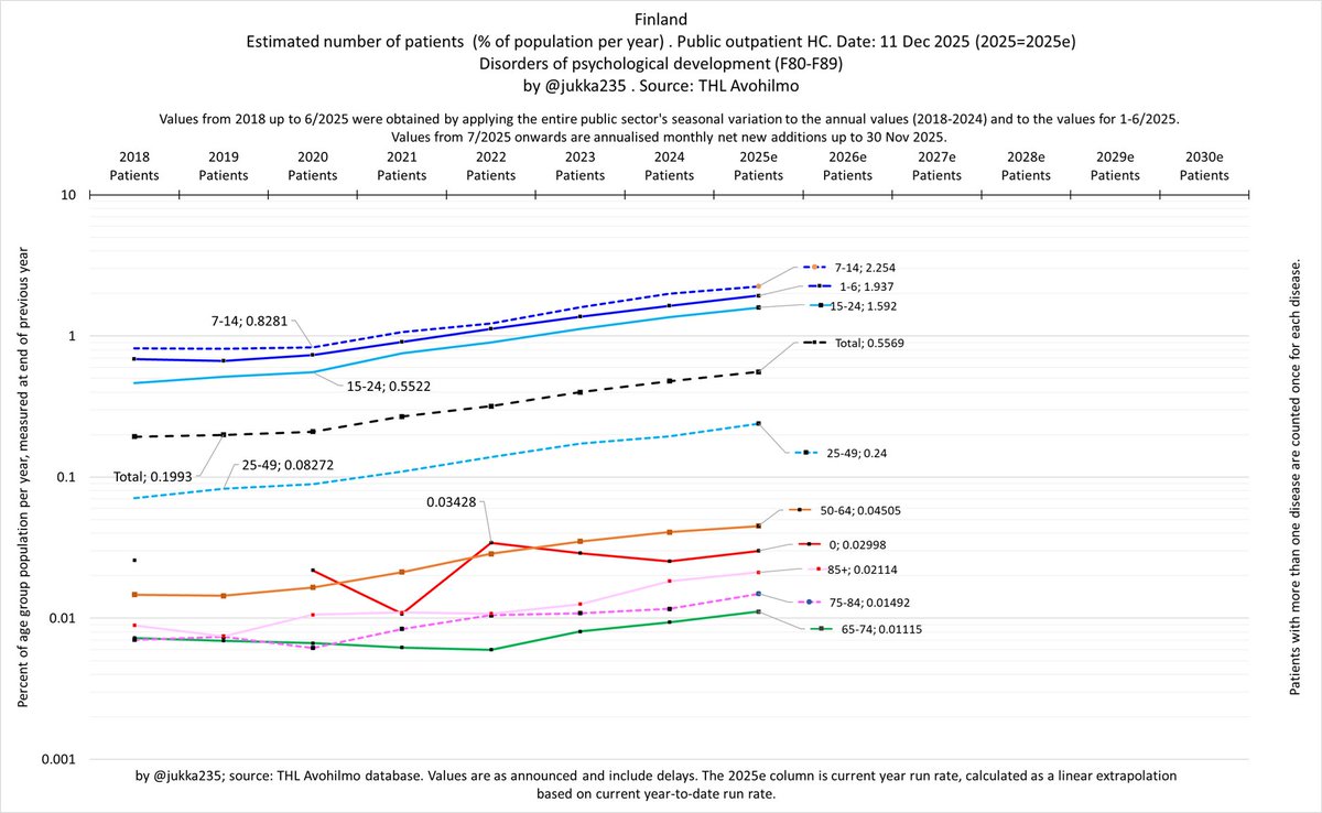 Between 2020 and 2025e, the number of patients with developmental delay or disorder diagnoses grew at an average annual rate of 21.6% (10x in 11.8 years). The fastest patient growth was seen in pervasive developmental disorders, incl. autism and Asperger syndrome (F84). 2/x