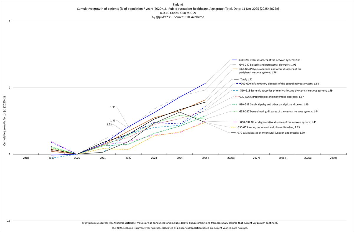 - fastest growth (2024-2025e): Inflammatory diseases of the central nervous system (G00–G09), 19.7% 3/x