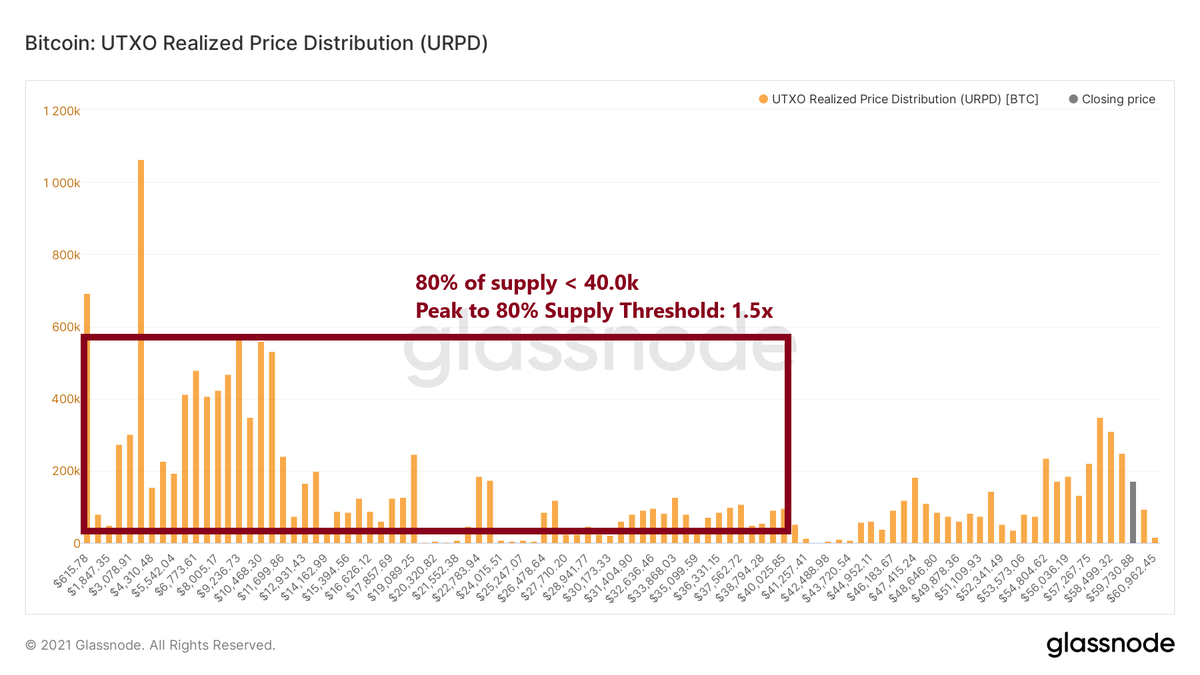 3/ Today, 80% of supply is concentrated at 40.0k and below. The peak was around 61.6k. A ratio of only 1.5. The higher price regions today have much stronger price support.