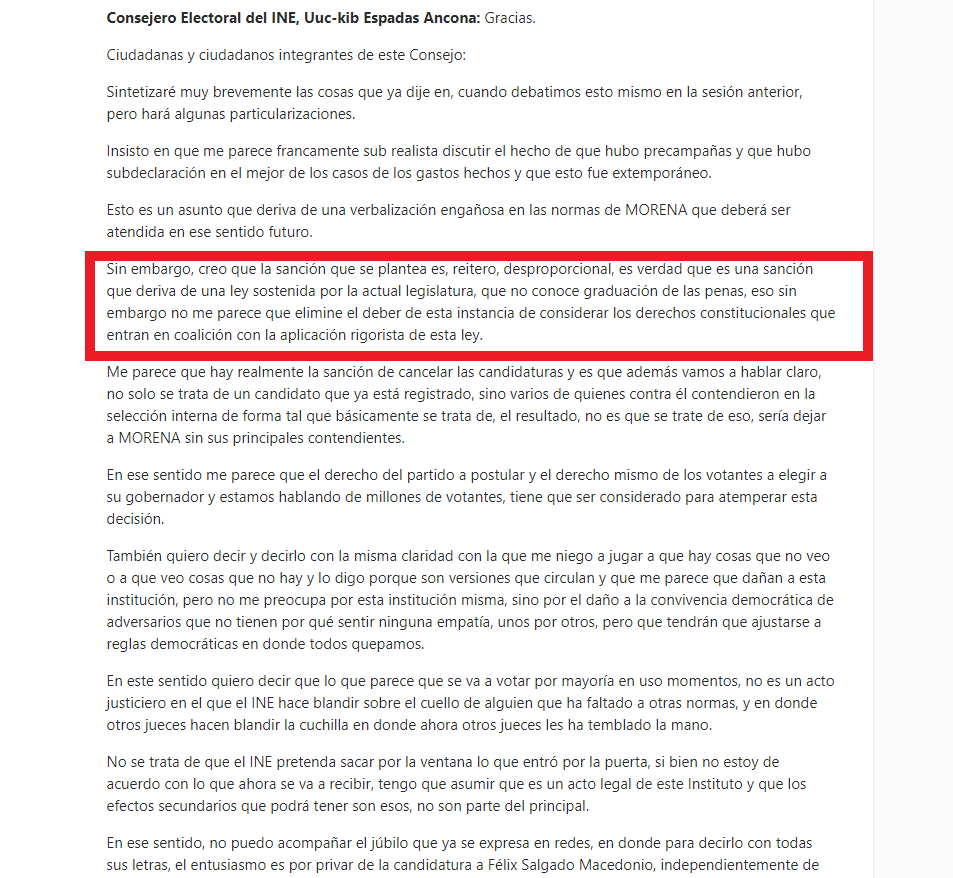 Ahora, si bien es cierto que la actuación del INE me parece cuestionable, es evidente que si Morena hubiera sido más cuidadoso, no se hubieran metido en estos líos.