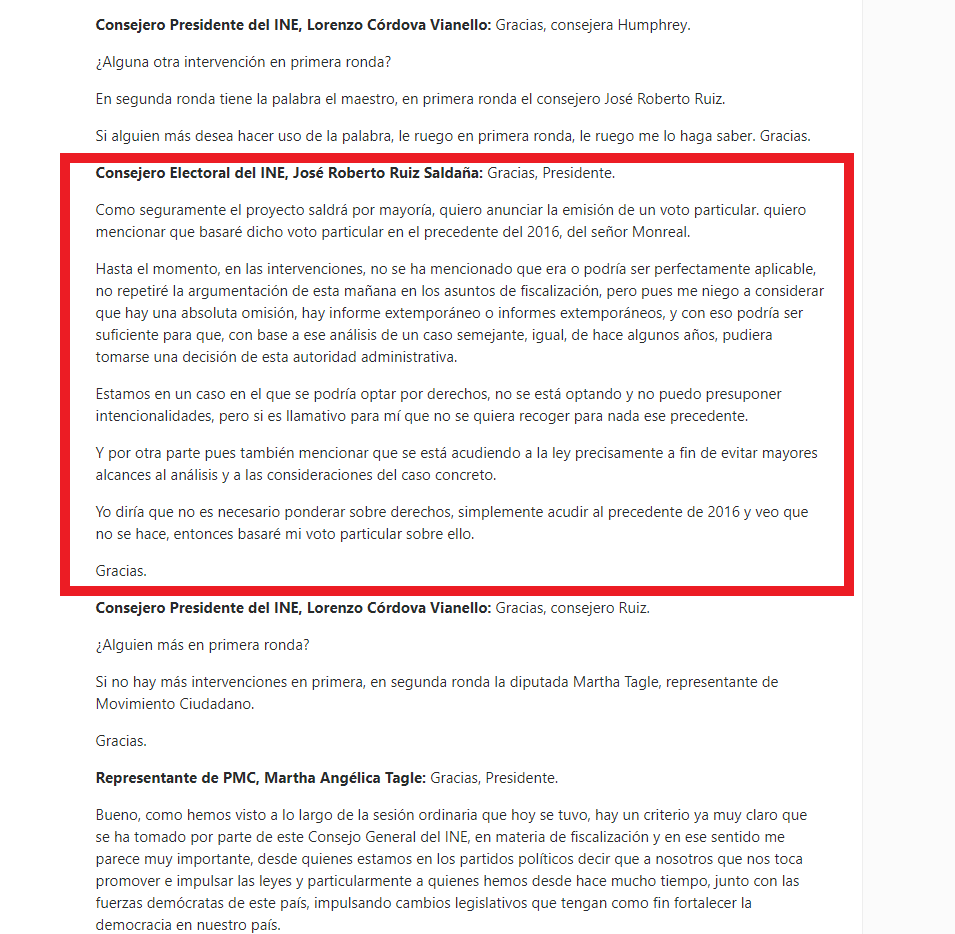 Otro consejero del INE, José Luis Saldaña, recordó que en 2016 hubo un caso similar con David Monreal, candidato de Morena a la gubernatura de Zacatecas, y a pesar de cometer la misma falta, no se le canceló la candidatura. ¿Por qué antes no y ahora sí?
