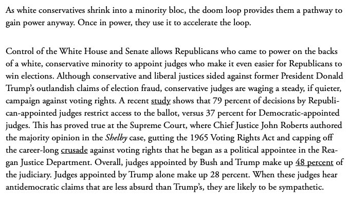 Anyhow, I’m just musing about what’s become of the GOP — if “become” describes a steady state in which “white conservatives [continue to] shrink into a minority bloc, [but a] doom loop provides them a pathway to gain power anyway.” theatlantic.com/ideas/archive/…