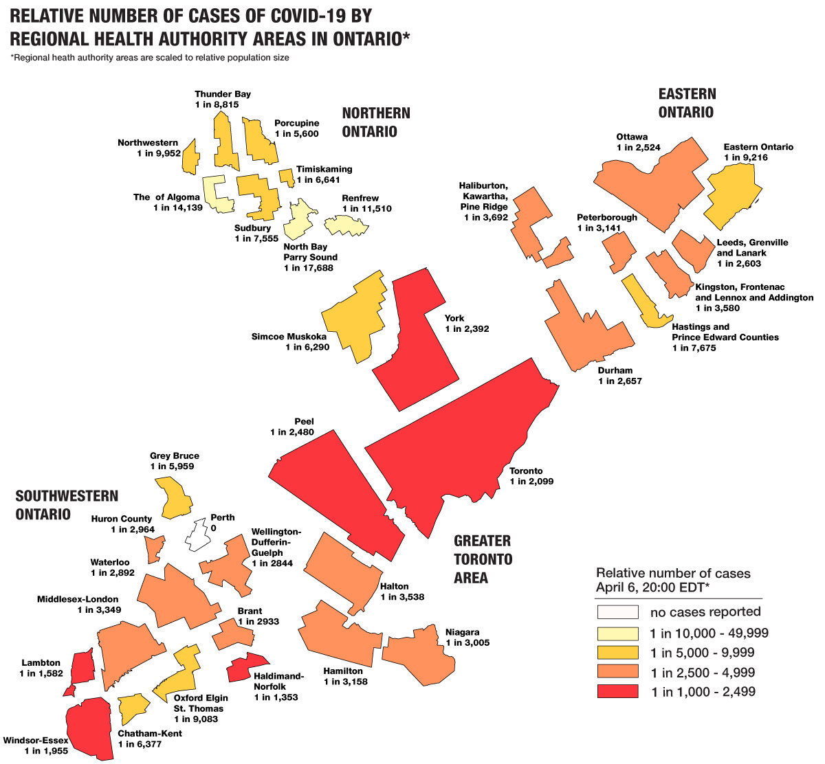 The per capita caseload in Ontario’s southwest looks awful, even in comparison with Toronto. The caseload in Lambton, across from Port Huron, looks awful too. (Source: canadiangeographic.ca/article/mappin…)