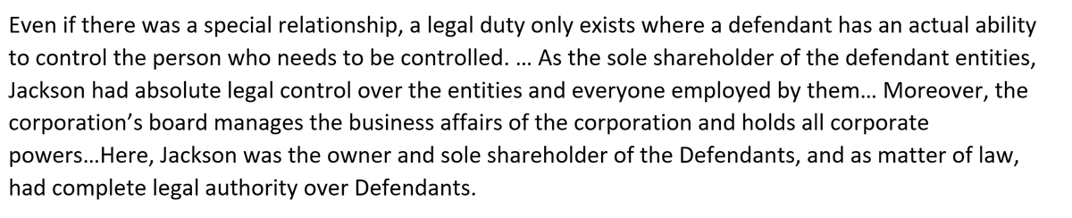 Further, he must show that they had a "duty of care" as part of the relationship & were able to control MJ.