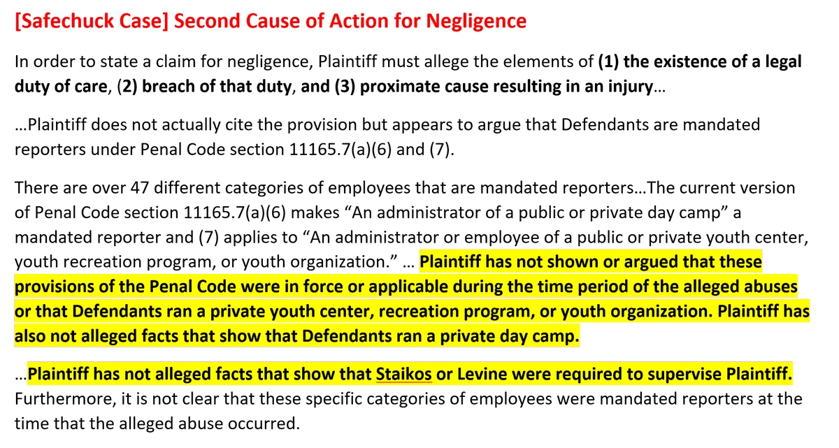 In JS' case, Finaldi was unable to demonstrate how MJ's companies were legally mandated reporters.