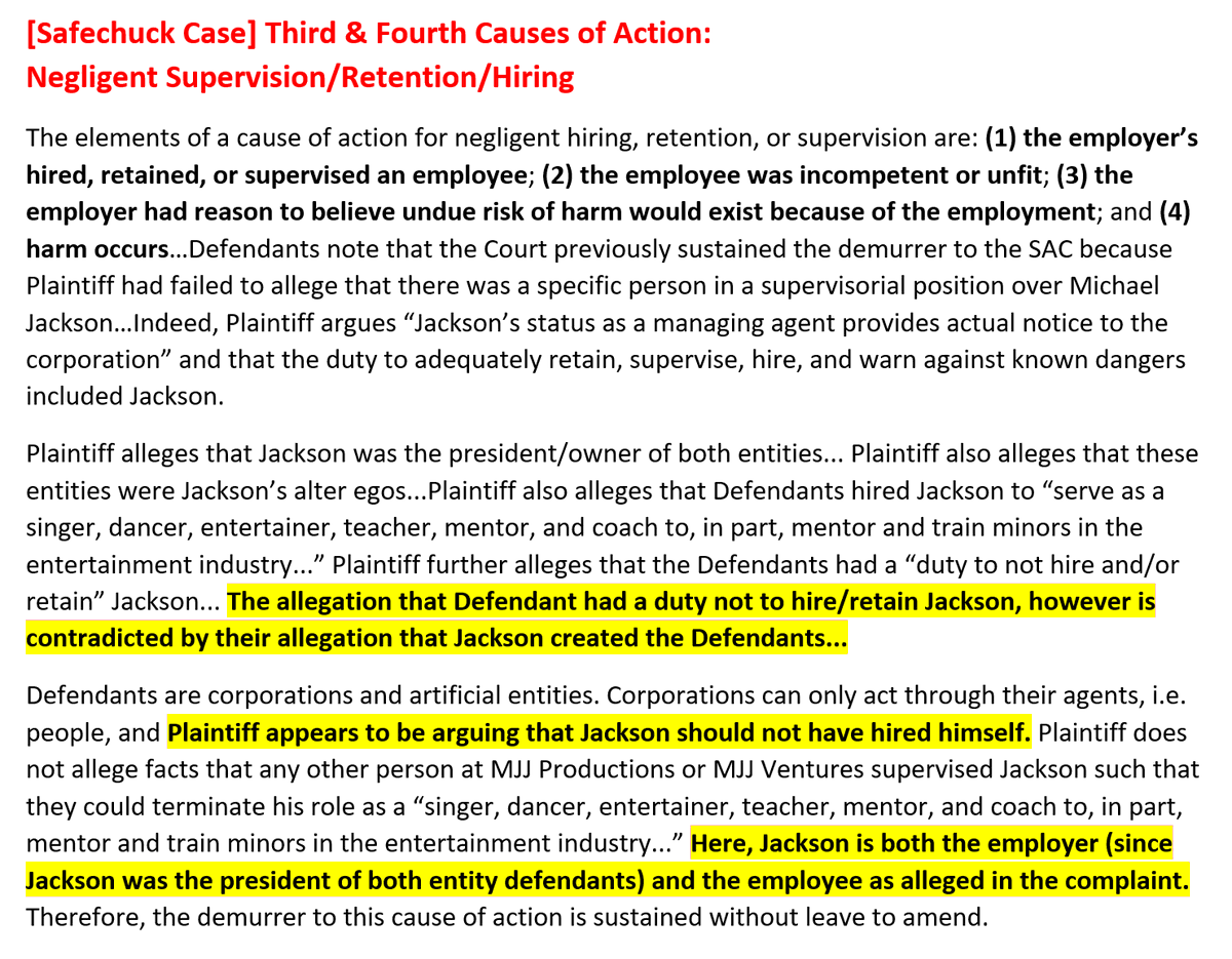 Finaldi uses misplaced examples to try and argue that MJ's companies had a duty to train & warn, which the judge pointedly corrects.