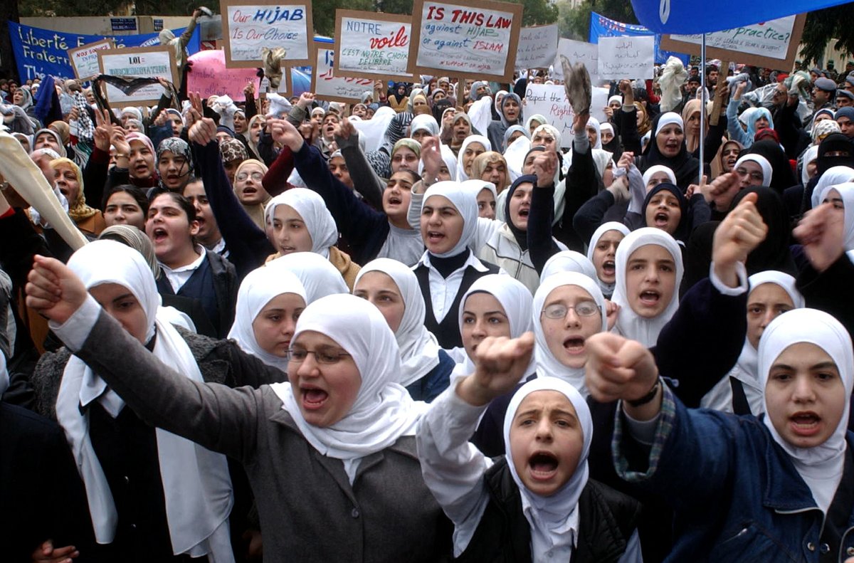 Photo 7: Lebanese Women Protest in Front of French Embassy in Beirut Against Decision to Ban Hijab in French Schools (2004)