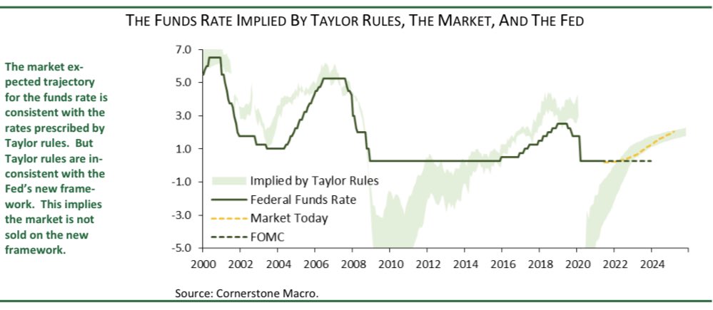 These results are in line with what we get from market prices. Expectations for the funds rate are in line with traditional Taylor rules, but those Taylor rules are not compatible with the new #Fed framework. 4/6