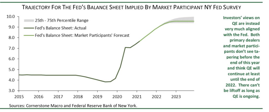 So, investors are out of sync with the #Fed on rate policy. However, they are very much in sync when it comes to QE: no taper this year, and slow taper to end QE at the end of 2022 at the earliest. 5/6