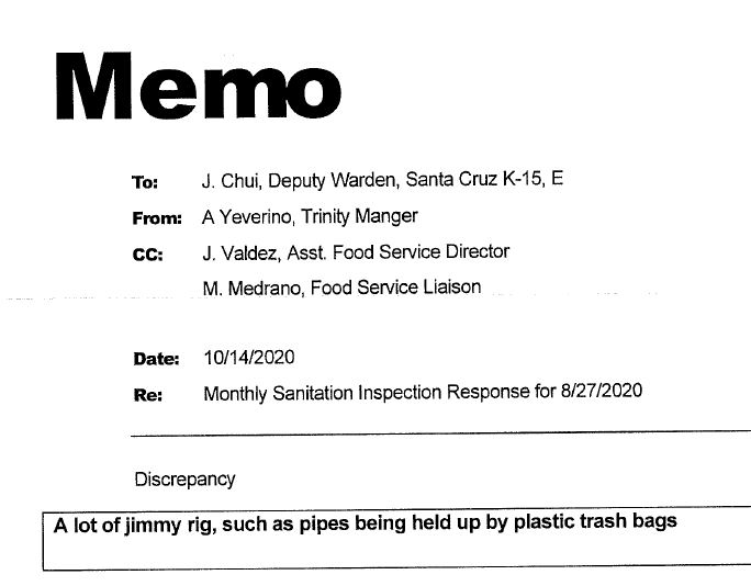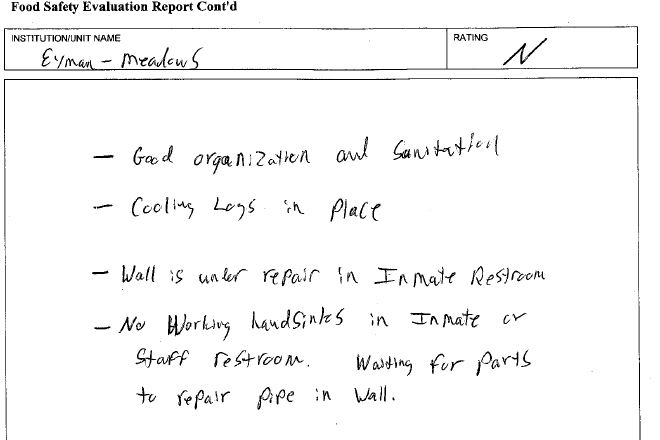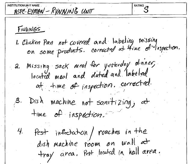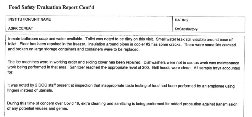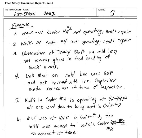 Learning more about the integrity of these inspections the Department of Corrections performs on its own facilities - check out the note from the DOC inspector: