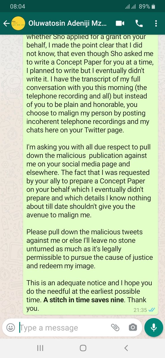I've been off social media for personal reasons but I've to state this: I NEVER applied for ANY grant on behalf of @callmerahila. I've also NEVER received ANY grant for my human rights cases before. Sowore & Tosin know this. Sadly, one of them isn't making full disclosure #Thread