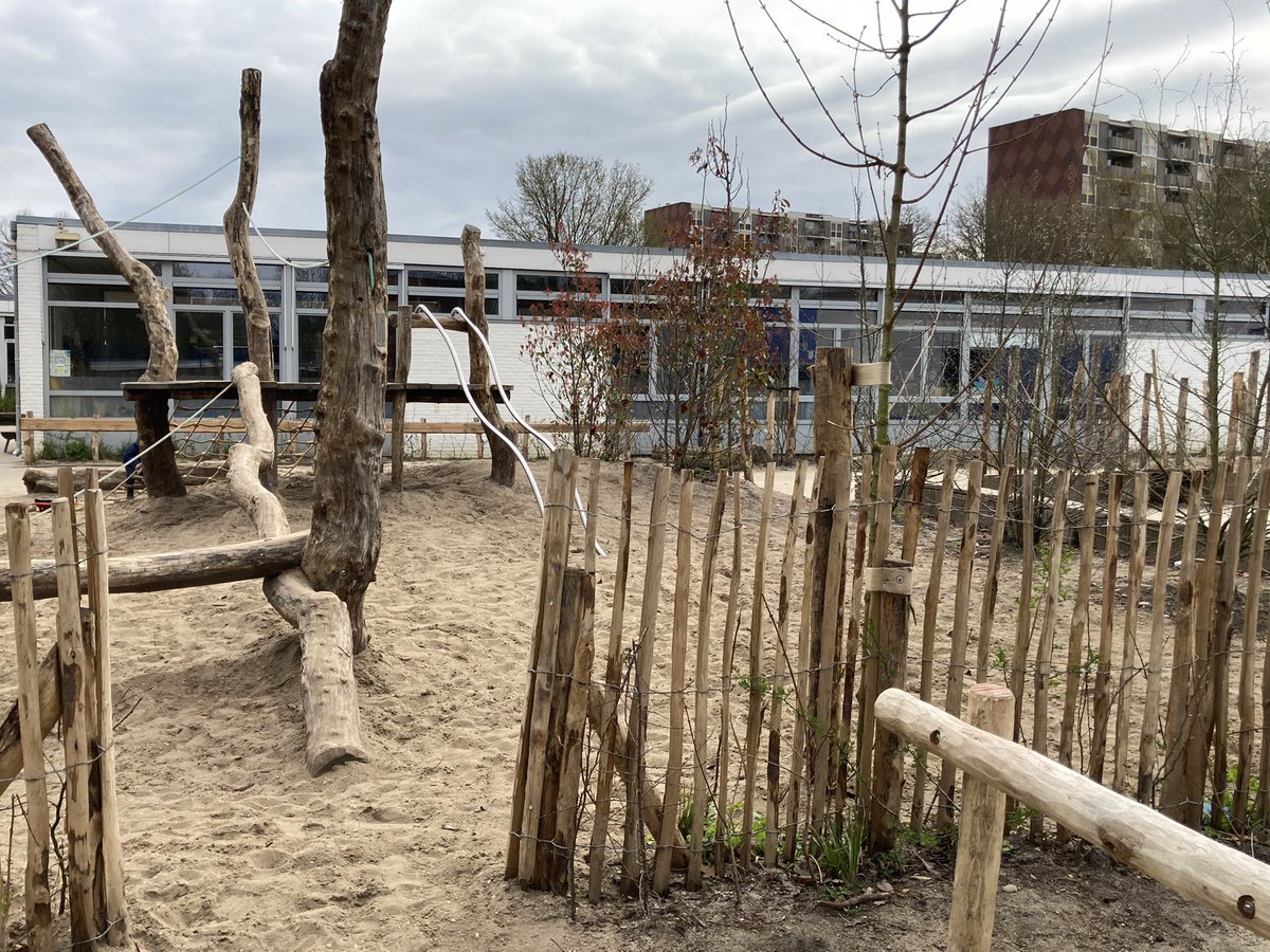 We delen ons plein met een reguliere school. De meeste pauzes hebben we na elkaar. Nu ook noodzakelijk omdat we geen vermenging van leerlingen mogen hebben. Het plein is begin dit schooljaar dankzij een sponsoractie omgetoverd in een natuurspeeltuin.