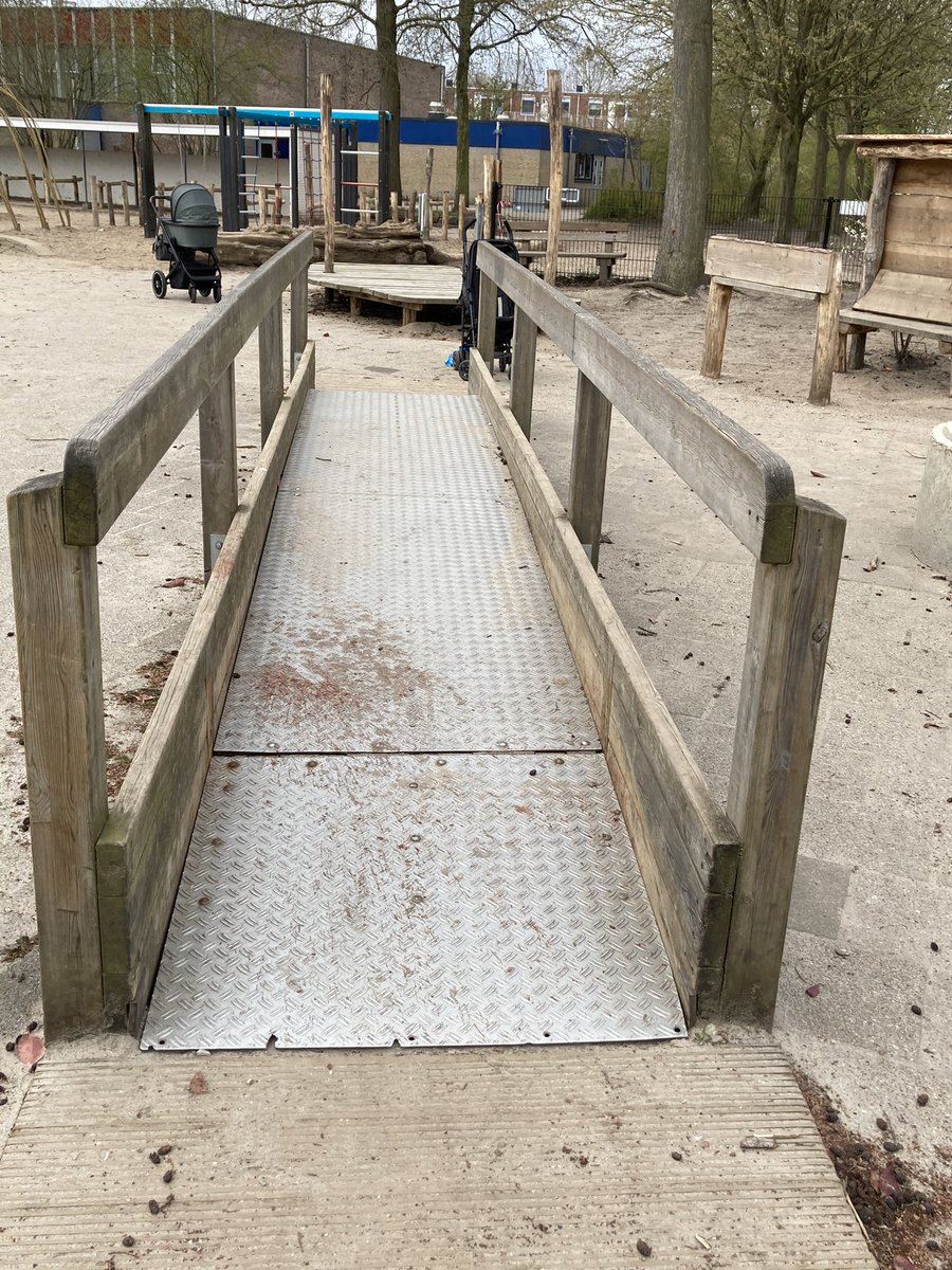 Ook voor de leerlingen in een rolstoel is er genoeg te doen. Spelen met water en zand, een nest schommel en een rolstoel wipwap (een plank waar je op kunt rijden en die dan naar beneden gaat als je over het midden bent). Ook leuk op een fietsje trouwens 😃.