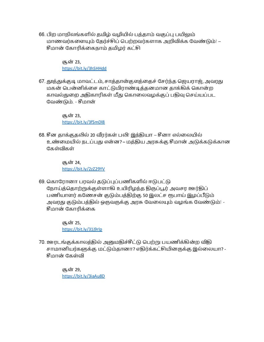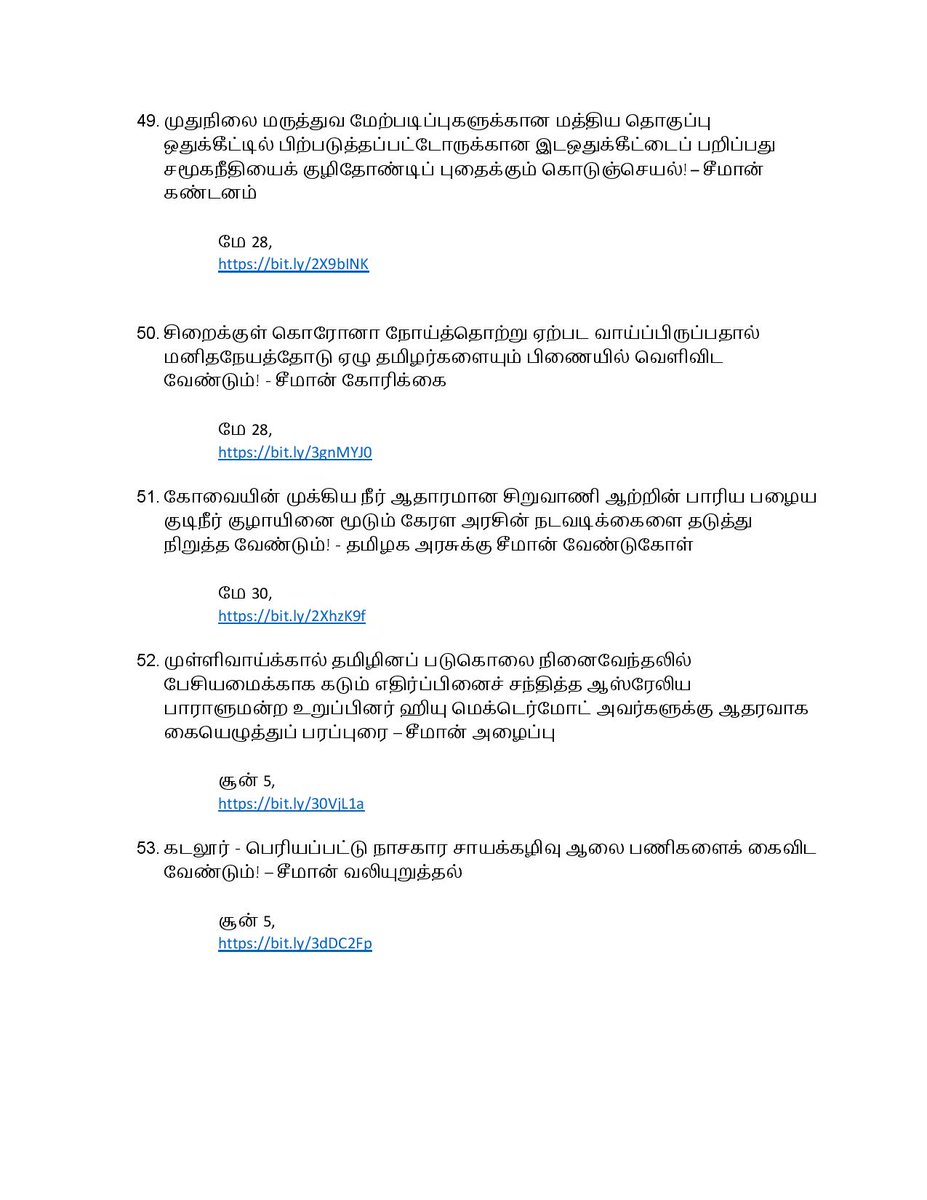 கொரோனா தொற்றுச் சீனாவில் பரவத்தொடங்கிய சில நாட்களில் நானறிந்தவரையில் இந்தியாவிலேயே முதன் முதலாகப் பிப்ரவரி 03 ஆம் தேதியே அதைப் பற்றி அறிக்கை கொடுத்தவர் அண்ணன் சீமான். அதிலிருந்து இன்றுவரை 120 அறிக்கைகள் கொடுத்திருக்கிறார். அதைத் தொகுத்து பார்த்து மீண்டும் படித்தபொழுது தான்