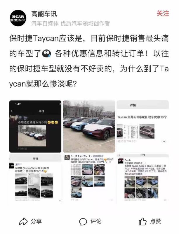 Porsche Taycan is experiencing sluggish sales in China even after multiple discounts according to Chinese social media. Porsche ICE cars sold well in the past.