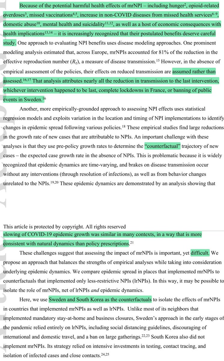 3/ "We estimate the unique effects of more-restrictive NPIs (mrNPIs) on case growth rate in the spring of 2020 by comparing effects in other countries to those in Sweden/South Korea.
