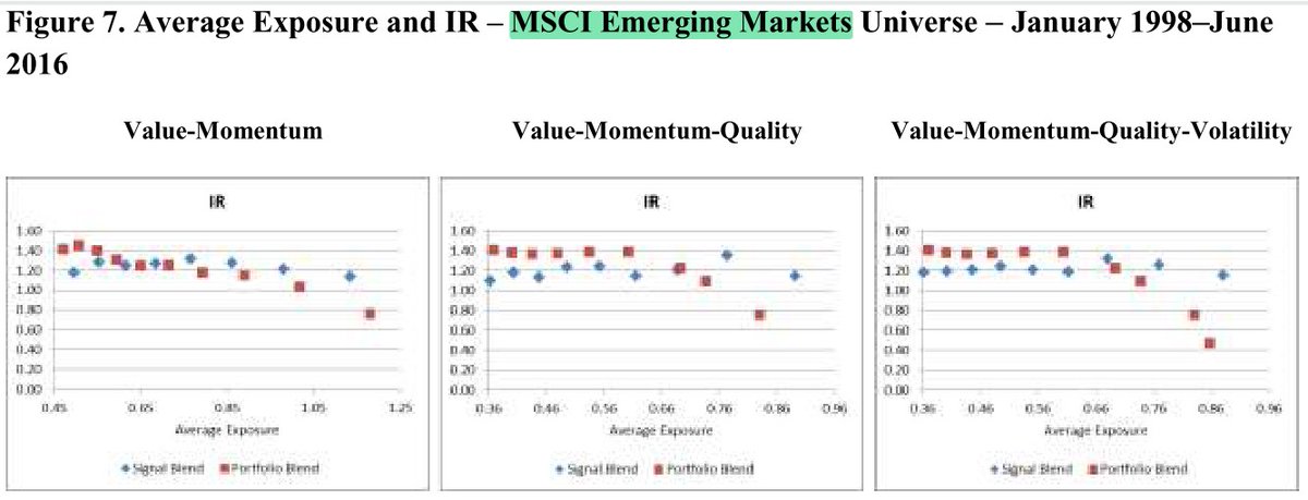 8/ "At low-to-moderate [high] levels of factor exposure (starting with the top 50% signal blend portfolio), the portfolio [signal] blend is superior.