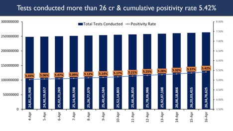 The cumulative tests conducted in the country surpassed 22 crores (22,19,68,271).