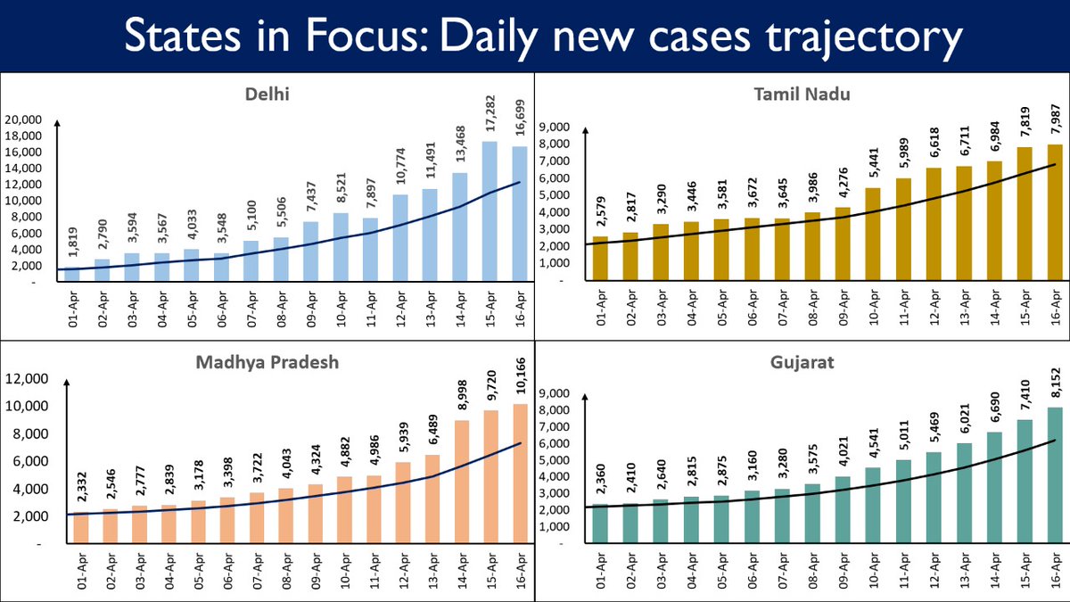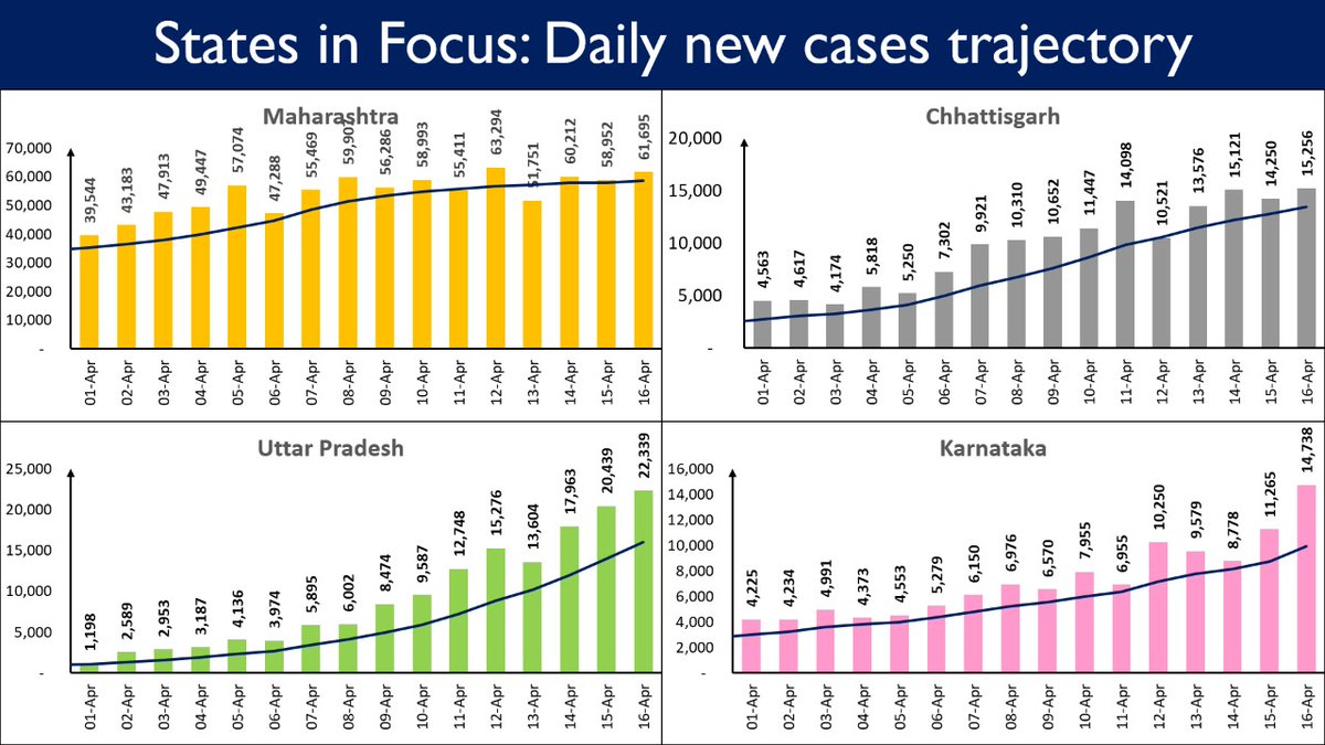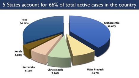 Maharashtra, Kerala, Punjab, Karnataka, Gujarat, and Tamil Nadu continue to report a spike in Daily New Cases.