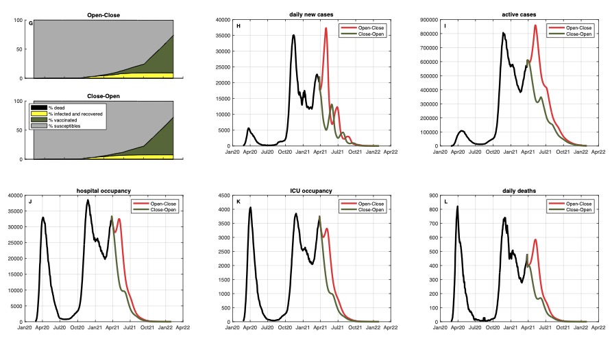 La soluzione migliore (e attuabile)? Misure di contenimento intermittenti, però partendo con una chiusura: Close-Open ha stesso costo economico di Open-close e salva almeno 14.000 vite 7/n