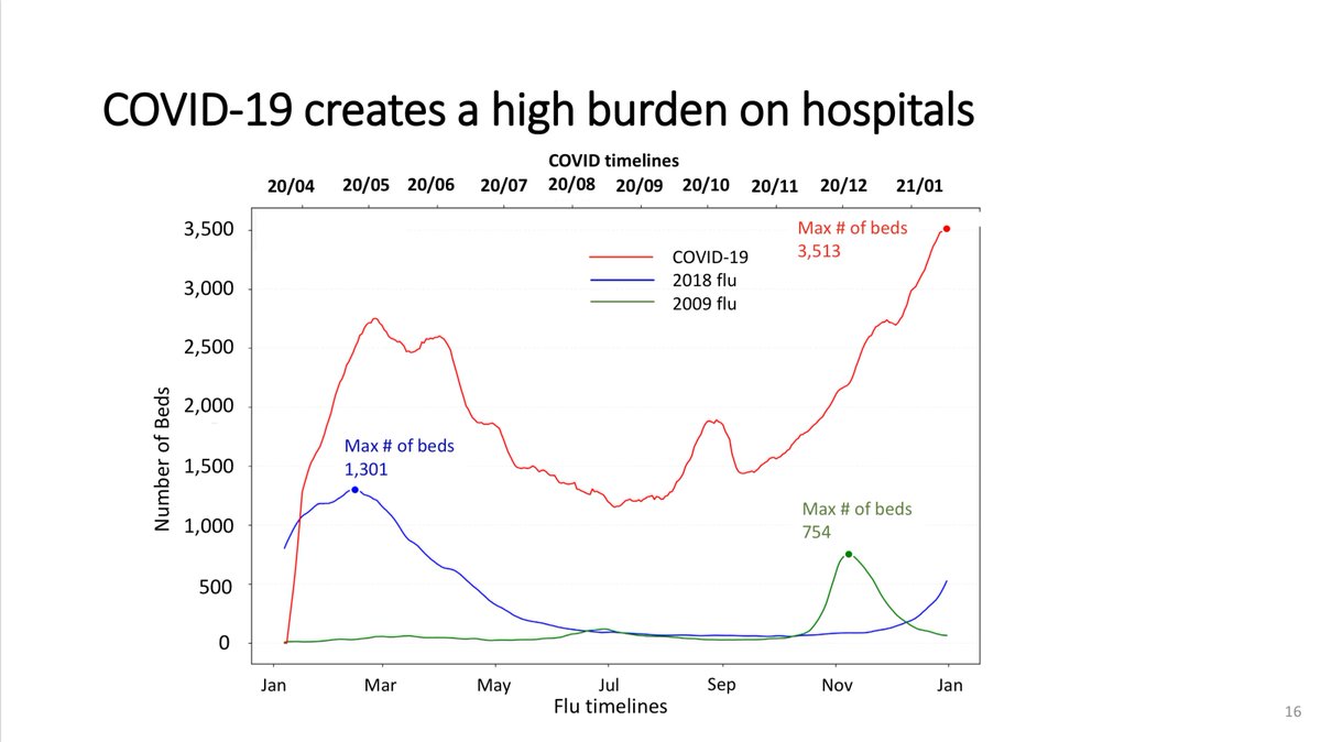- If infection rates are further from peak than we might think (if they double again, hospitalizations will too.)