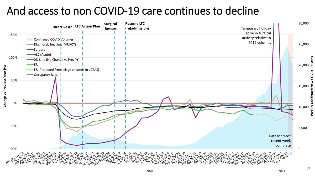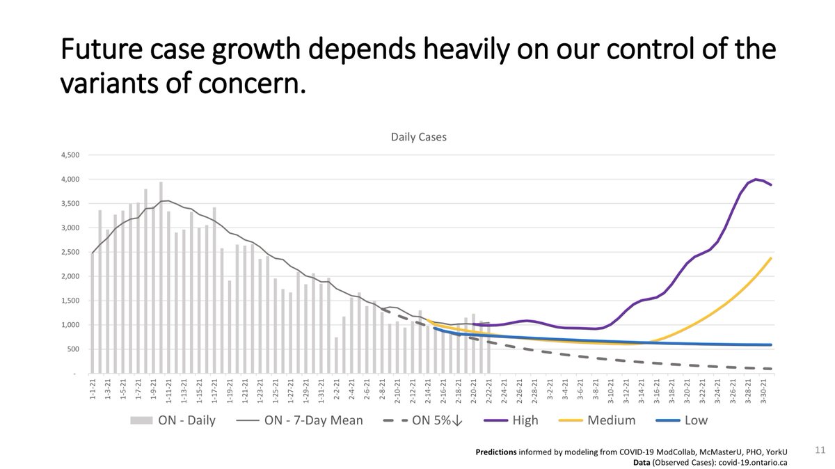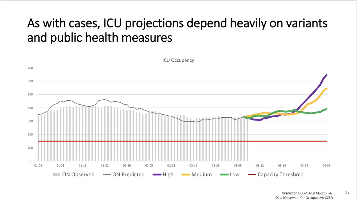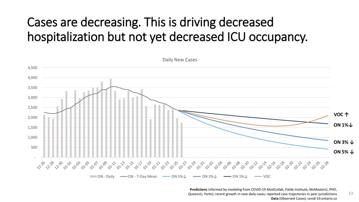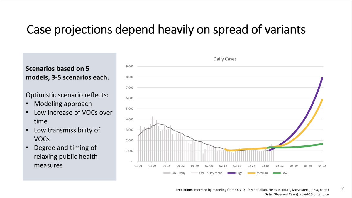 It's reasonably clear Ontario's current wave has not yet peaked in infections; with lag time, we're at least a couple weeks from hospitalizations peaking.