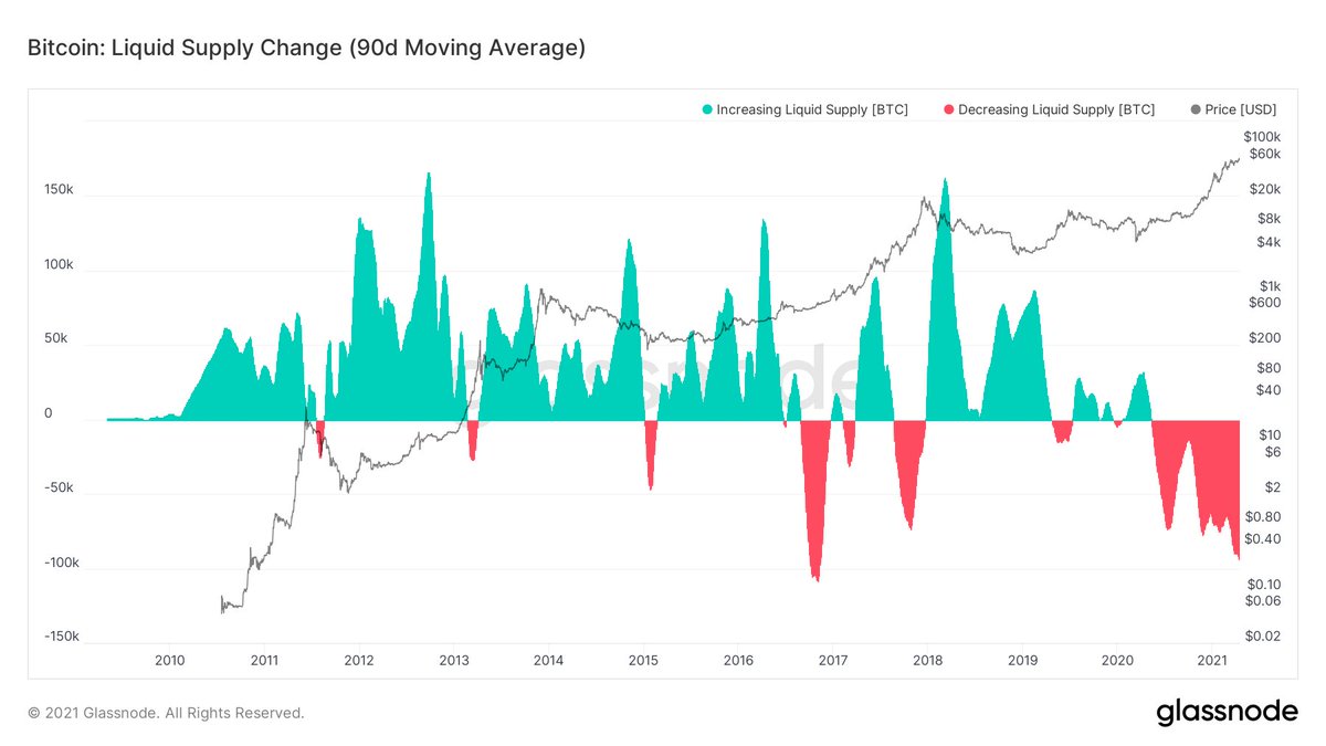 This confidence leads to less willingness of longer-term investors to sell coins to new investors lining up and waiting to get in. I believe this is exactly what we are seeing in metrics such as liquid supply or exchange balances.