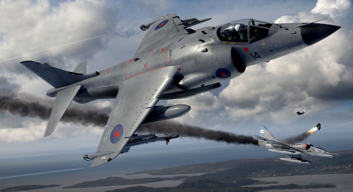 La historia de los dogfights en Malvinas se nos presenta como una sucesión de triunfos británicos. El balance oficial es de 21 aparatos argentinos derribados (9 Dagger, 8 A-4, 1 Mirage III, 1 Canberra, 1 Pucará y 1 C-130), por ninguna baja inglesa. Pero eso no es del todo cierto.